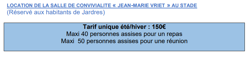 Réservation exclusive aux habitants de Jardres, en fonction des disponibilités.